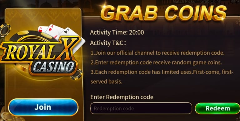 Follow the official Royal X Casino social media pages, Telegram channels, or trusted gaming websites to get the latest Royal Casino Redeem Code Pakistan daily.